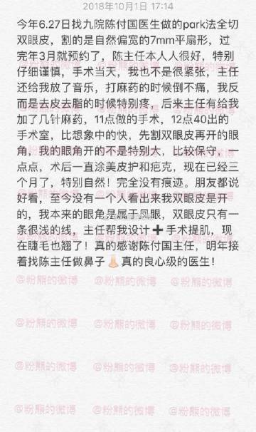 粉熊的微博一双眼皮投稿2018.6.27,上海九院,陈付国,全切➕开眼角,价格1w2。
