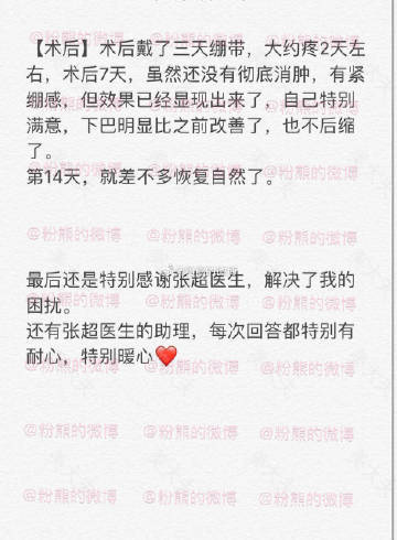 妹子术后第2天就来投稿儿啦,下巴的加长已体现效果,改善很大因为感动感恩,所以投稿儿。称特别满意的一点,是张超完全按照她的要求做了。