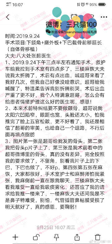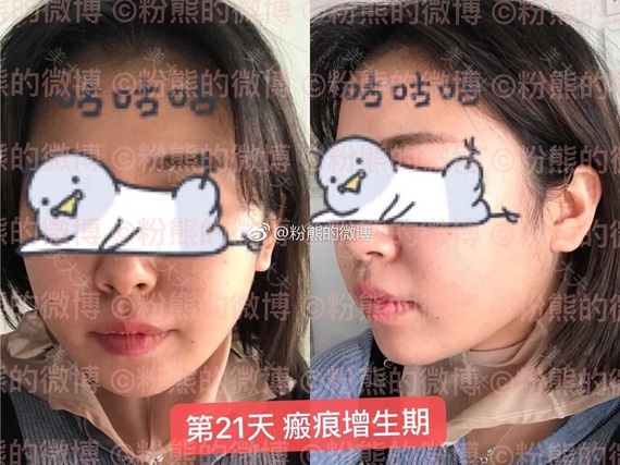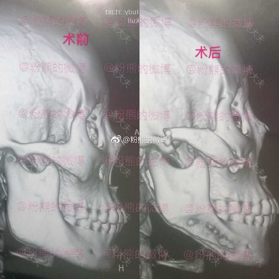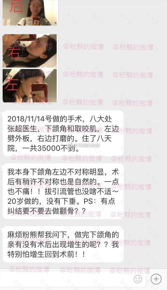 #粉熊的微博一脸型投稿#2018/11/14号做的手术,北京八大处张超医生,下颌角和取咬肌,左边劈外板,右边打磨的。住了八天院,一共35000不到。