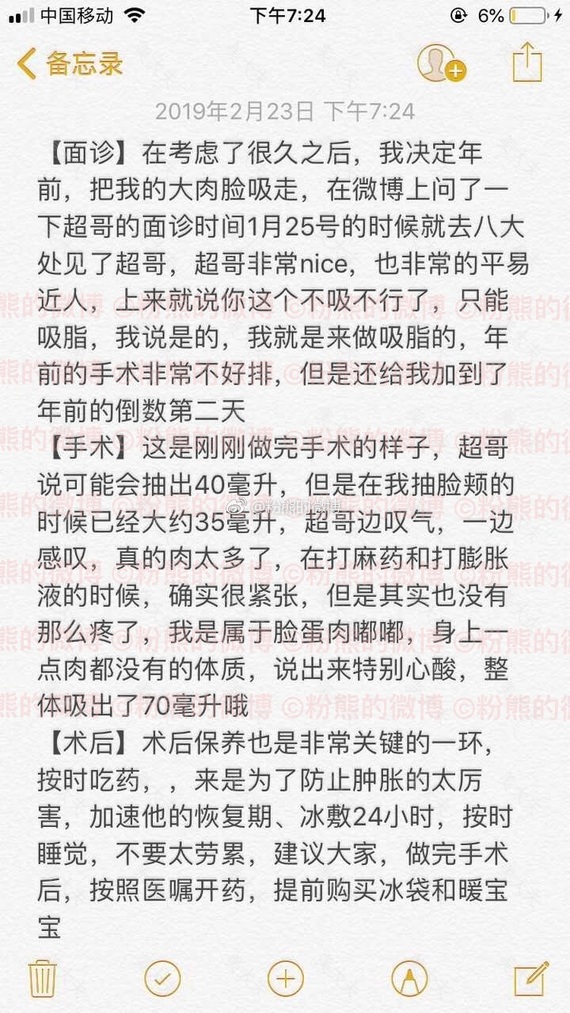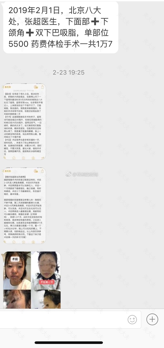 #粉熊的微博一一吸脂投稿# 2019年2月1日,北京八大处,张超医生,下面部➕下颌缘➕下巴吸脂,单部位5500 药费体检手术一共1万7