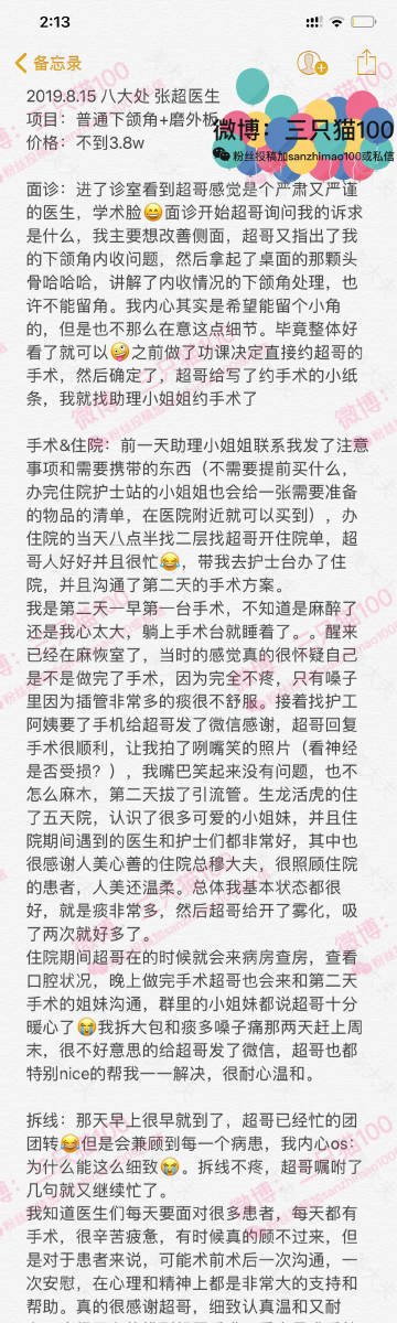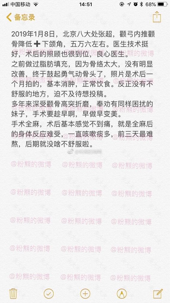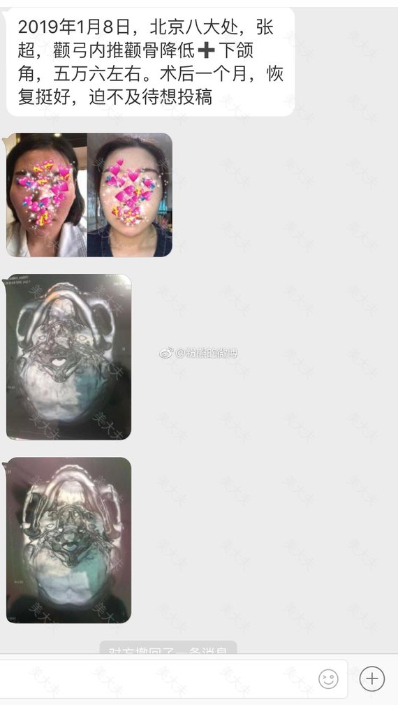 #粉熊的微博一吸脂投稿#2019.3.30,北京八大处,张超,面部吸脂(下颌缘下面部双下巴) ,一共将近1.8w。