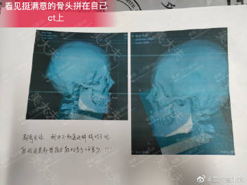 【2】之前在别的医院做过面诊,医生说我需要做切下颌角和颧弓内推,后来又面了张超,张超说:下颌角没必要切,只是低,但是我又怕颧弓推太多,和下面不匹配,显得下面方方的,超超说劈外板就可以,颧弓确实得大推。