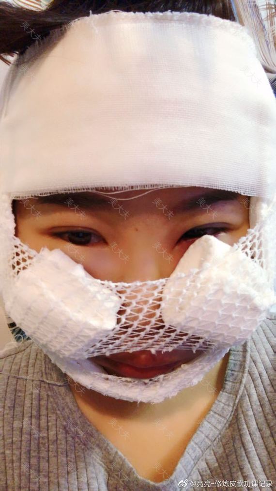 很信任超哥的技术就是第一次做手术有点怕 超哥给人安全感足足的 而且声音跟播音员一样好听 期待恢复 明天换药 已经包成菠萝头@八大处整形医生张超 #兔包叽的日常# 北京