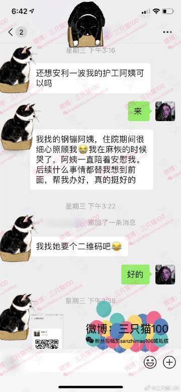 另外,妹子还安利了她的护工阿姨,觉得她很细心周到,图8是她的护工阿姨的二维码。