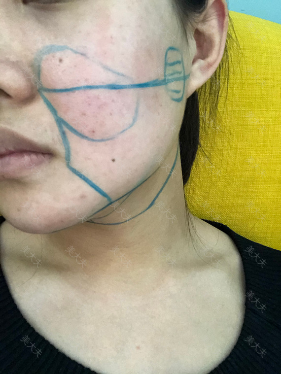 张超的方案:简单的下巴环切 但是和下颌缘会衔接的不流畅 所以如果我纠结流畅问题 可以可以下颌角一起做 但是我觉得既然做的做了如果改善了一个问题又会冒出另外一个问题 我肯定会纠结