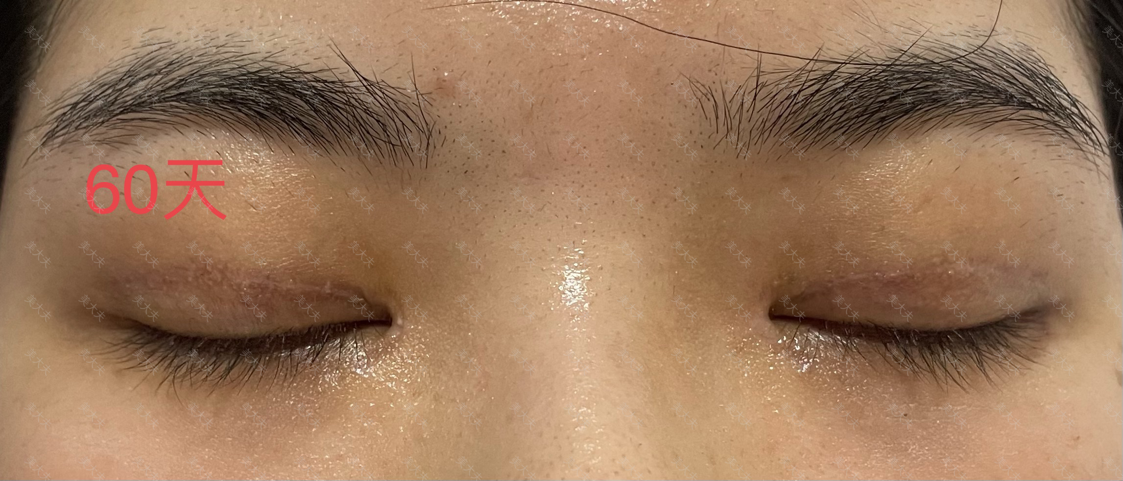 我之前眼睛天生单眼皮肿眼泡,眼线画5cm只能看到一点点边边双眼皮贴贴三个眼睛一眨就没了,双眼皮胶双各种眼皮贴买了十几种,微博无意间看到了双眼皮手术效果对比,然后在各个平台疯狂找各种手术效果对比图最终选择王医生。先约了面诊确定了手术时间,手术当天是很期待的,手术基本上没什么痛感都能接受,术后当时就不疼了,回家当了一天瞎子,第二天休息了一天第三天就去正常上班了,带上眼镜也不明显。12月1号手术的,现在手术刚好两个月了,我感觉除了术后水肿以外也在慢慢消肿变自然,买的祛疤膏因为懒也没用几次,真是挺太满意了